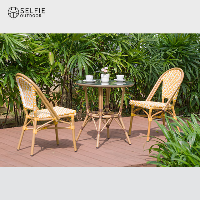 เฟอร์นิเจอร์สวนลานโมเดิร์นเฟอร์นิเจอร์หวายกลางแจ้งเก้าอี้วางซ้อนกันได้เก้าอี้บิสโต้ฝรั่งเศส