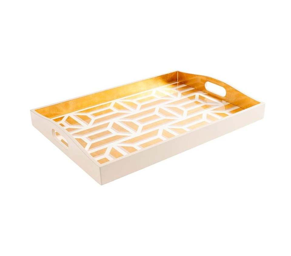 ถาดสี่เหลี่ยมขนาดใหญ่เคลือบแล็กเกอร์ประตูสวนสีขาวและสีทอง