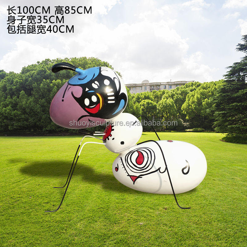 สวนโลหะไฟเบอร์กลาสเรซิ่นงานฝีมือมดหุ่นด้วยตาขนาดใหญ่สำหรับตกแต่งสนามหญ้าสวน