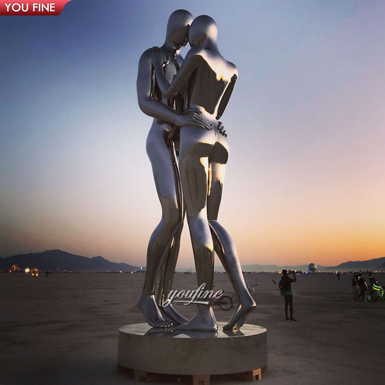 ประติมากรรมรูปปั้นคู่รักกอดกัน ทำจากสแตนเลสสตีล ศิลปะดนตรีสวนสไตล์โมเดิร์น