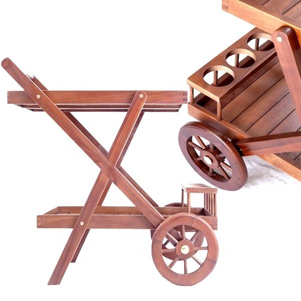 ชุดรถเข็นไม้สักสไตล์ยุโรปสำหรับสวนเฟอร์นิเจอร์ลานกลางแจ้งพร้อมโซฟาสองตัวสำหรับรับประทานอาหารในโรงแรมสวนสาธารณะ