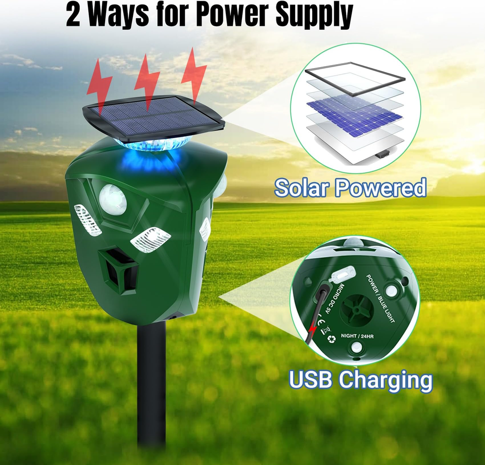 เครื่องไล่สัตว์ด้วยพลังงานแสงอาทิตย์ใช้พลังงานแสงอาทิตย์ใช้ในสวนสำหรับกลางแจ้งใช้ในสวนนกพิราบกระรอกกระต่ายจิ้งจอกกวางสุนัขและแมวใช้ไล่แมลงด้วยอัลตราโซนิค