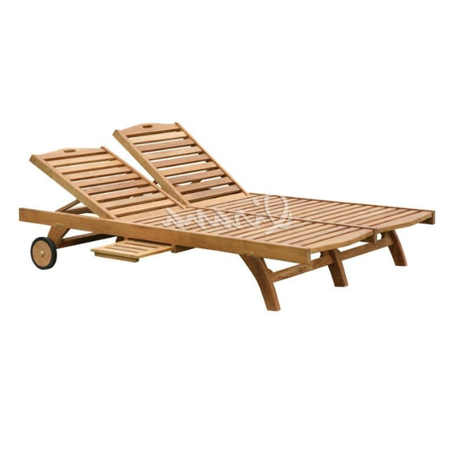 เฟอร์นิเจอร์ลานสวนเก้าอี้ไม้คู่อาบแดดที่ทันสมัยเก้าอี้เลานจ์โรงแรมสวนเตียงอาบแดดกว้างขวางกลางแจ้งสำหรับคู่รักที่สมบูรณ์แบบ