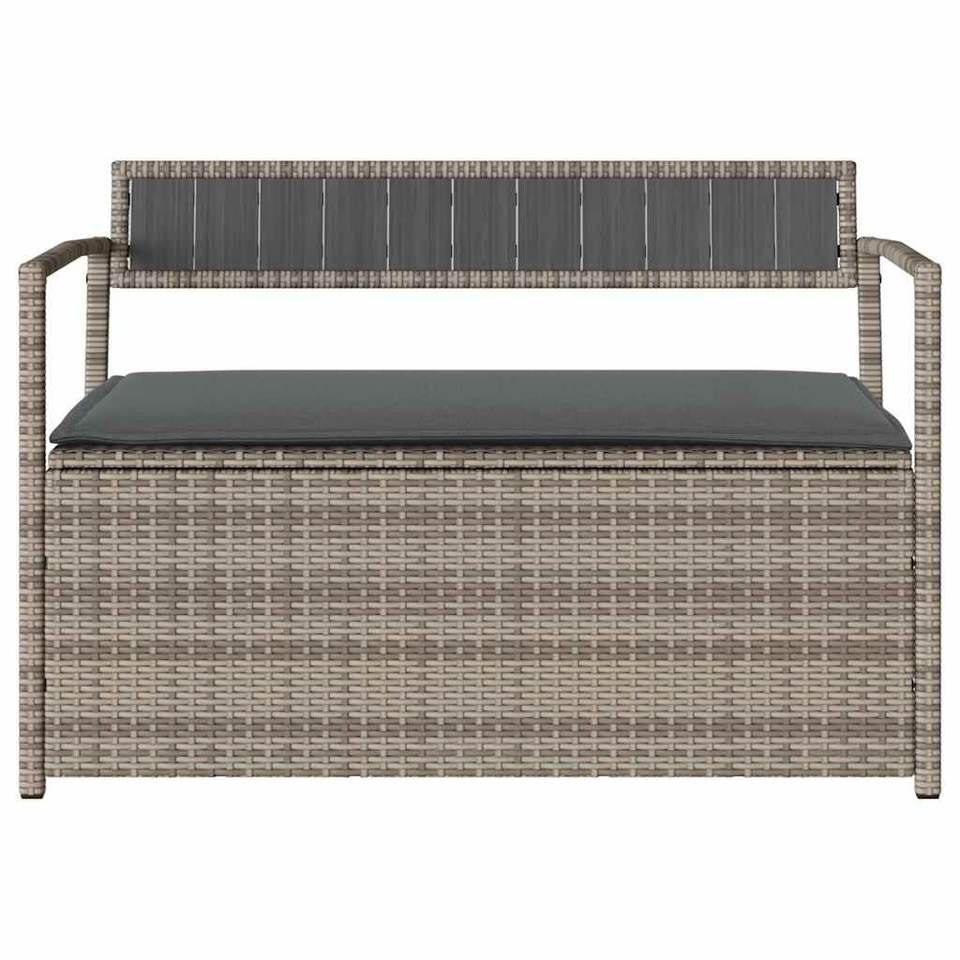 ม้านั่งเก็บของในสวน ทำจากหวาย PE สีเทาและเหล็กเคลือบสีฝุ่น พร้อมไม้อัด ดีไซน์สวยงามสำหรับลานบ้าน