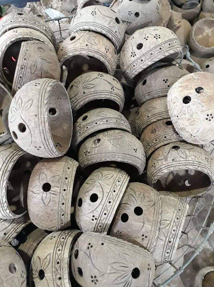 กระถางปลูกดอกไม้,อุปกรณ์ทำสวนกระถางต้นไม้กะลาทำมือสำหรับตกแต่งบ้านกลางแจ้ง