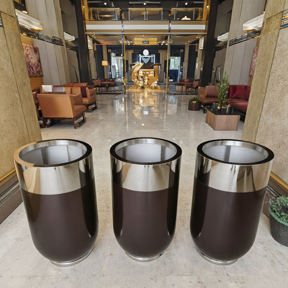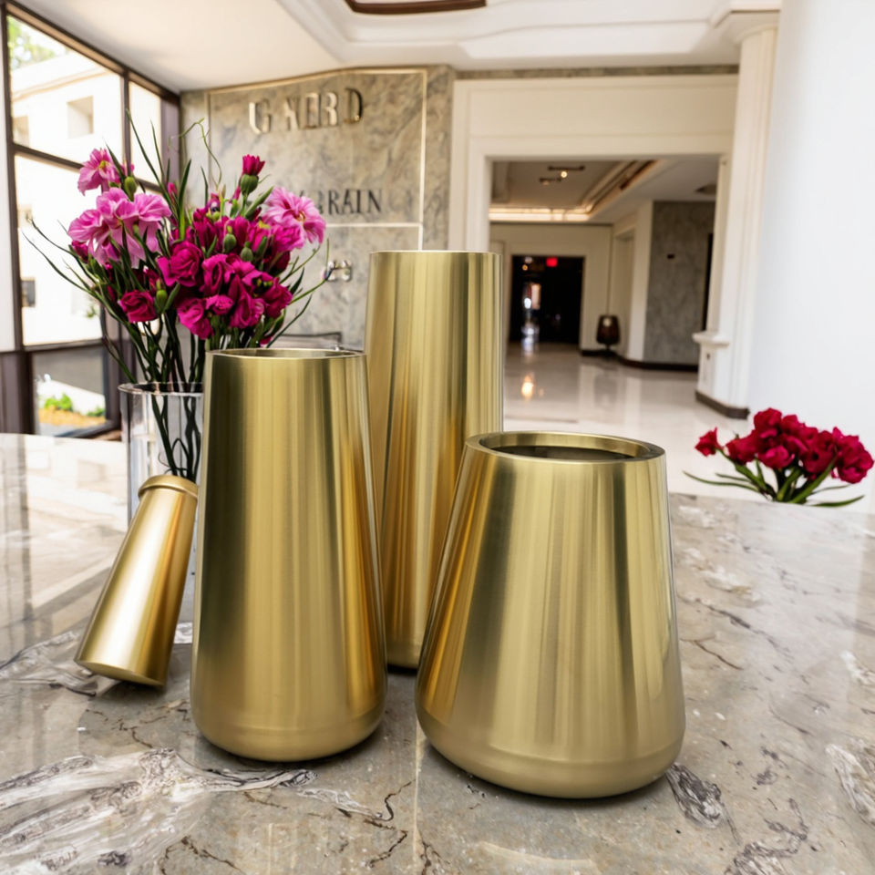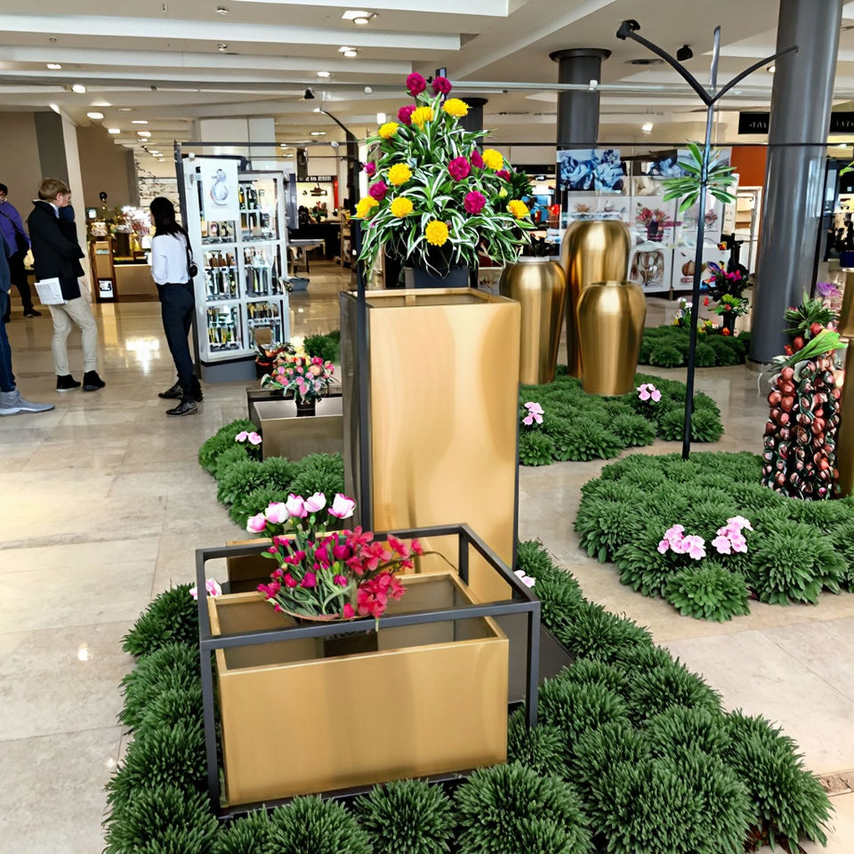แจกันตั้งพื้นขนาดใหญ่สีทองหรูหราทันสมัยสำหรับตกแต่งบ้าน กระถางดอกไม้ในร่ม กระถางต้นไม้โลหะสวยงามสำหรับกลางแจ้ง