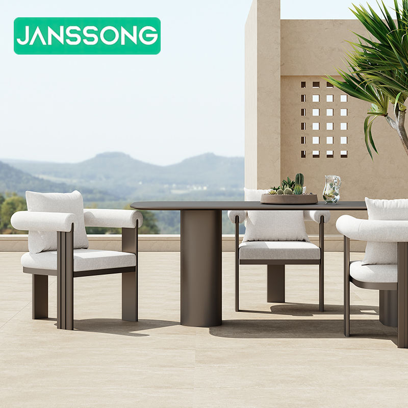 ชุดโต๊ะและเก้าอี้สนาม ชุดโต๊ะรับประทานอาหารกลางแจ้ง ชุดโต๊ะอลูมิเนียม ชุดเฟอร์นิเจอร์ระเบียง ชุดรับประทานอาหารกลางแจ้งสำหรับโรงแรม เฟอร์นิเจอร์สวน