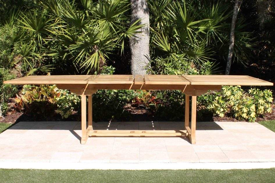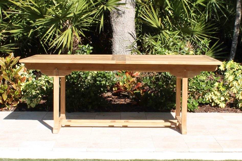 โต๊ะรับประทานอาหารไม้สักสำหรับสวนพร้อมการขยายสองสีธรรมชาติสำหรับเฟอร์นิเจอร์กลางแจ้งชายหาดหรือโรงแรม