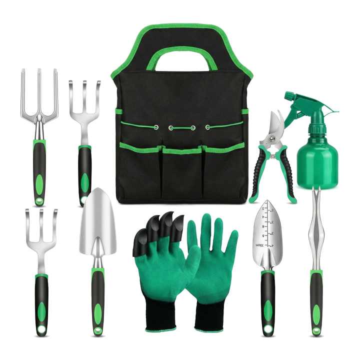 ชุดเครื่องมือทำสวนอะลูมิเนียมอัลลอยด์ AOZOU พร้อมกระเป๋าแบบนุ่ม ใช้งานด้วยมือ