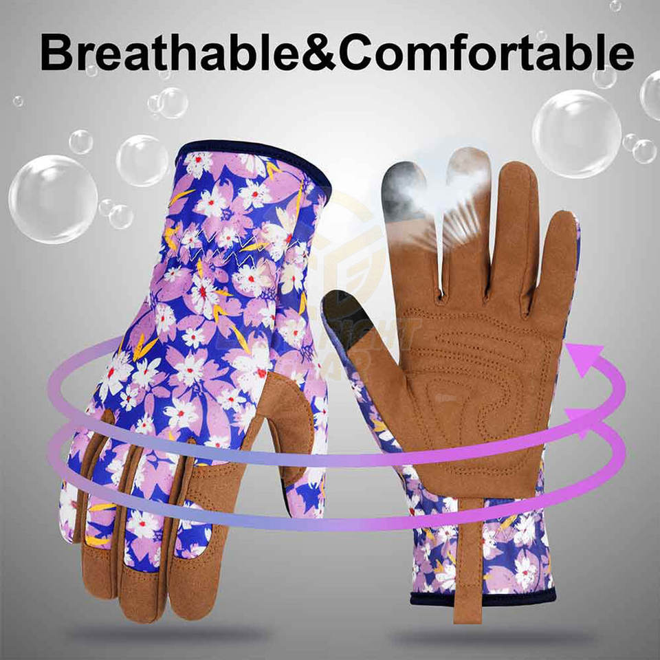 ถุงมือทำงานในสวนพร้อมแผ่นเสริมฝ่ามือเพื่อการยึดเกาะที่ดีขึ้นระหว่างงานทำสวนและปลูกต้นไม้ ถุงมือทำสวนที่สวมใส่สบาย