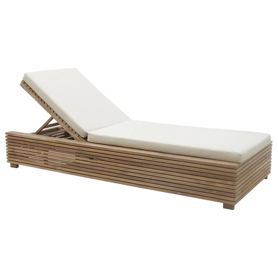 เก้าอี้อาบแดดไม้สักทรงลึก รุ่นโมเดิร์น ทำจากไม้สักแท้ พร้อมผ้ากันน้ำ สำหรับใช้งานกลางแจ้งในโรงแรมและวิลล่า
