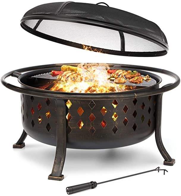 กองไฟในสวนทำจากเหล็กหล่อแข็งที่มีพื้นที่เผาไหม้กว้างและหน้าจอความปลอดภัยสำหรับบรรยากาศกลางแจ้งที่ผ่อนคลาย