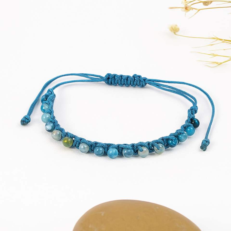 สร้อยข้อมือดอกไม้สีฟ้าเข้มสำหรับผู้หญิงเครื่องประดับทำด้วยมือที่ดีที่สุดด้วยสายปรับได้ macrame ที่มีคุณภาพสูงและลูกปัดดู