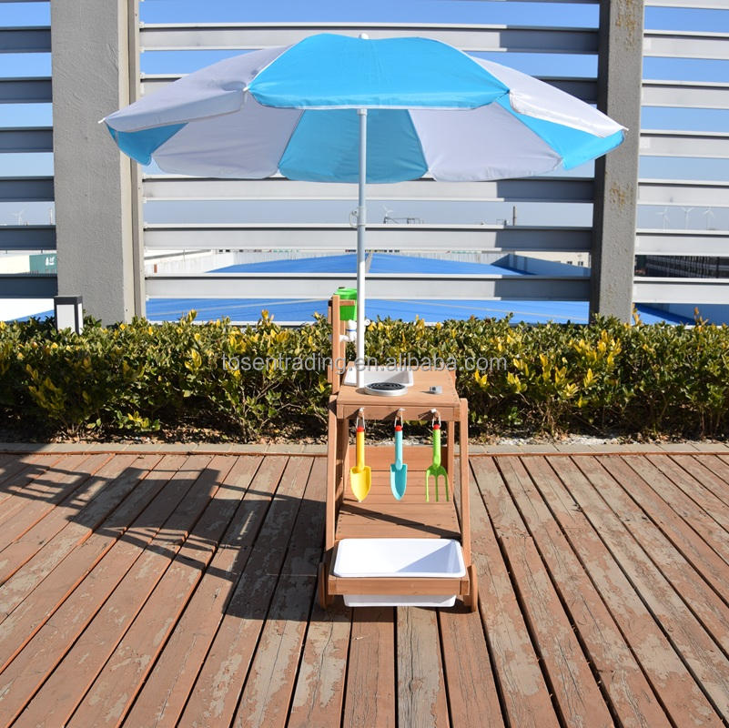 ชุดครัวไม้เนื้อแข็งสำหรับเล่นกลางแจ้ง Garder มาพร้อมอ่างล้างจาน ที่เก็บของ และร่มกันแดดแบบถอดได้ ของขวัญสำหรับเด็กเล็ก