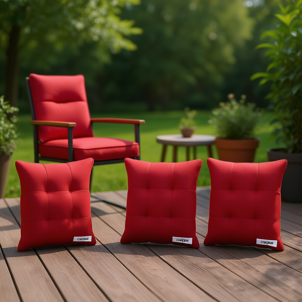 ชุดเบาะรองนั่งเก้าอี้กลางแจ้งการ์ดแมน ชุด 4 ชิ้น สีแดง ทรงสี่เหลี่ยม 26 x 26 นิ้ว ผ้าอ็อกซ์ฟอร์ดแบบเย็บติดกัน ทนทาน ถอดซักได้