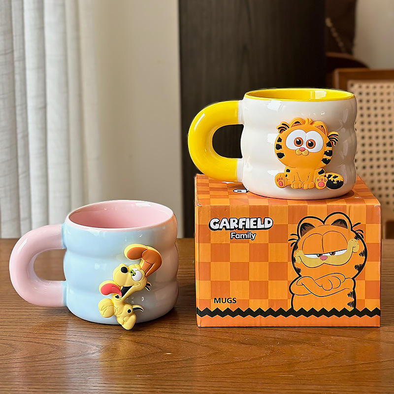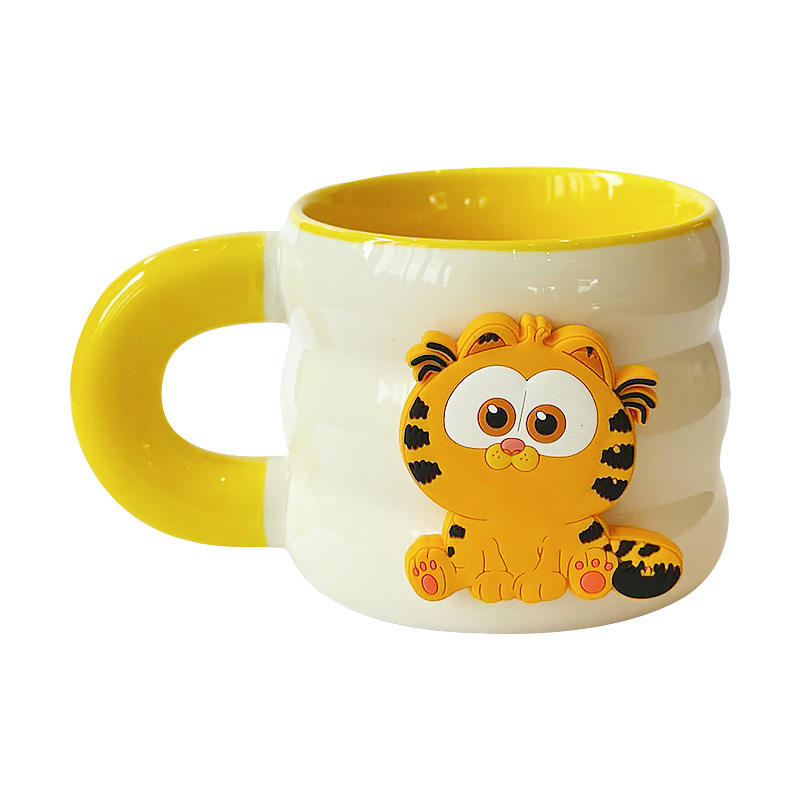 แก้วเซรามิกการ์ฟิลด์สีเหลืองชมพู ลายการ์ตูน พร้อมหูจับ สำหรับใช้ในบ้านและออฟฟิศ