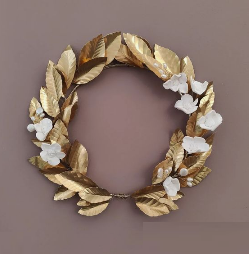 พวงมาลาและพวงหรีดสไตล์โมเดิร์นพวงหรีดดีไซน์ทองคำเปลวสำหรับตกแต่งบ้านพวงหรีดโลหะเครื่องประดับคริสต์มาส