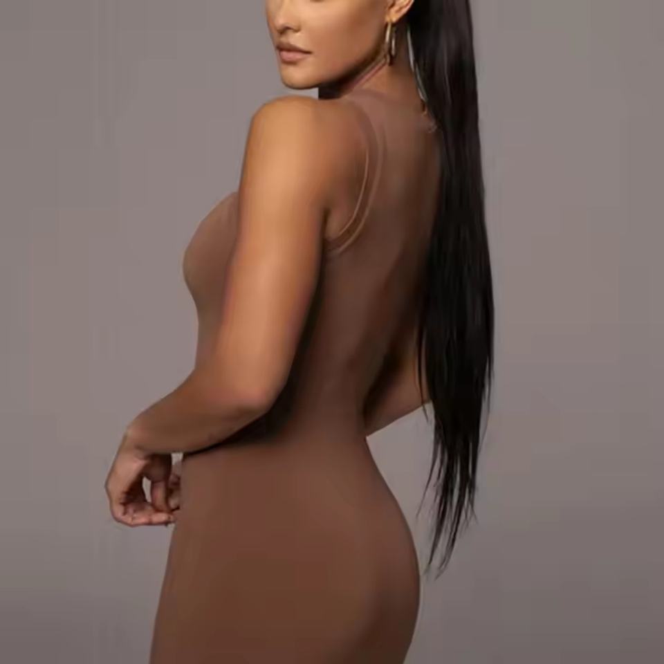 ชุดเดรสยาวผ้าฝ้ายบอดี้คอนแขนกุดสำหรับผู้หญิงชุดเดรสยาวแบบสุภาพเรียบร้อยสำหรับฤดูร้อนงานตามสั่ง