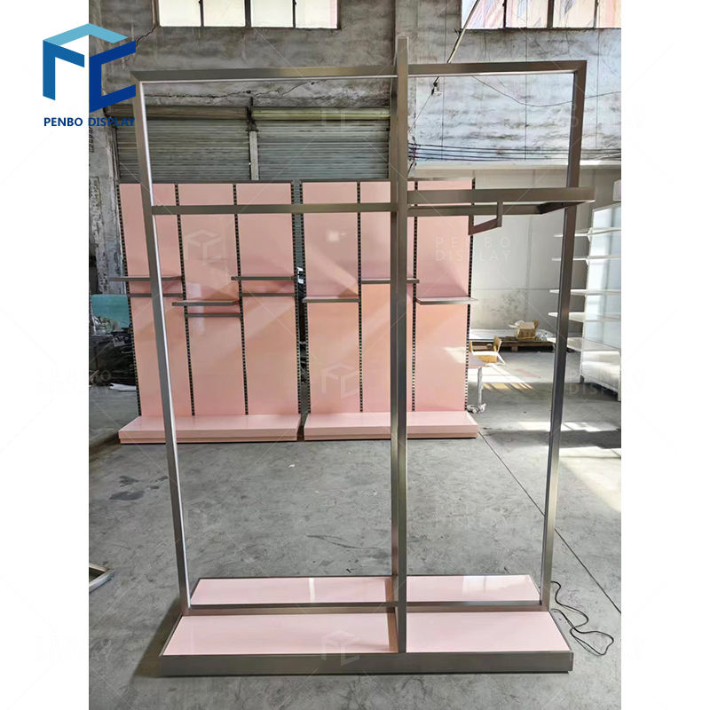 ราวแขวนเสื้อผ้าปรับได้พร้อมชั้นวางเสื้อผ้าดีไซน์เฟอร์นิเจอร์สำหรับร้านขายเสื้อผ้า