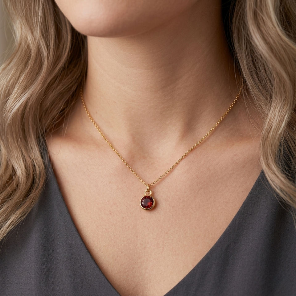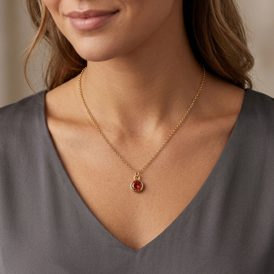 Product Name:Garnet Round Shape Silver Bezel Gold Plated Pendant