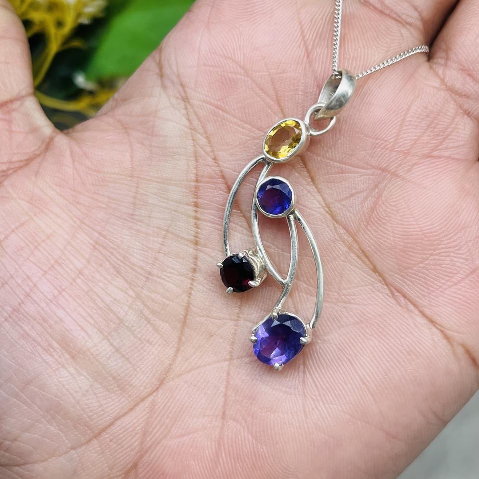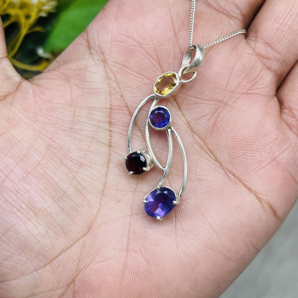จี้สร้อยคอพลอยโกเมน อเมทิสต์ ซิทริน ตัวเรือนเงินแท้ ดีไซน์หลากสีสัน