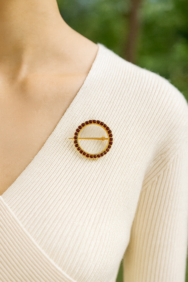 เข็มกลัดเงินแท้ 925 ชุบทอง ประดับพลอยโกเมน งานแฮนด์เมด สำหรับผู้ชาย