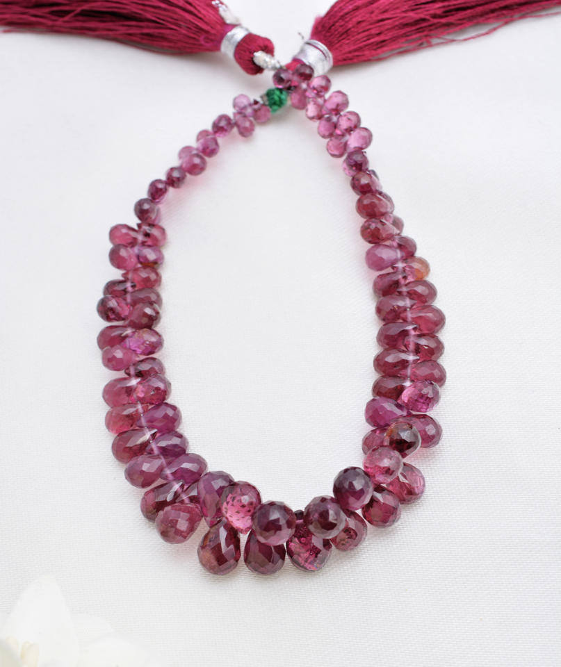 พลอยโกเมนทรงหยดน้ำเจียระไน 8 นิ้ว ธรรมชาติ สำหรับทำเครื่องประดับอัญมณี สร้อยคอ