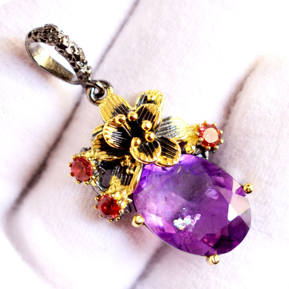 โกเมนพลอยจี้925เงินสเตอร์ลิงธรรมชาติสีม่วงอเมทิสต์เครื่องประดับปรับ