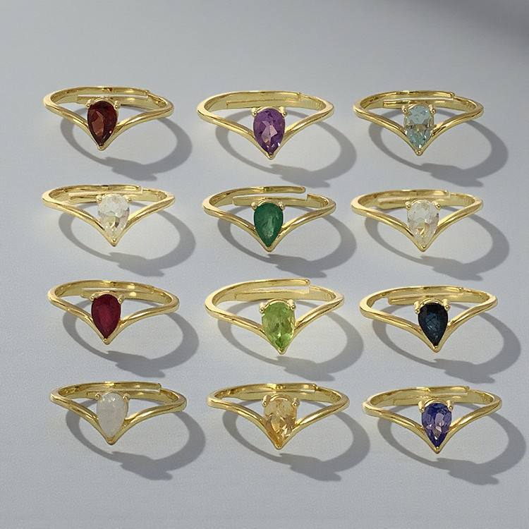 แหวนพลอยทรงลูกแพร์ชุบทองคำสีโกเมน | แหวนเงินแท้ 925 ประดับพลอยประจำเดือนเกิดสำหรับผู้หญิง ขายส่ง