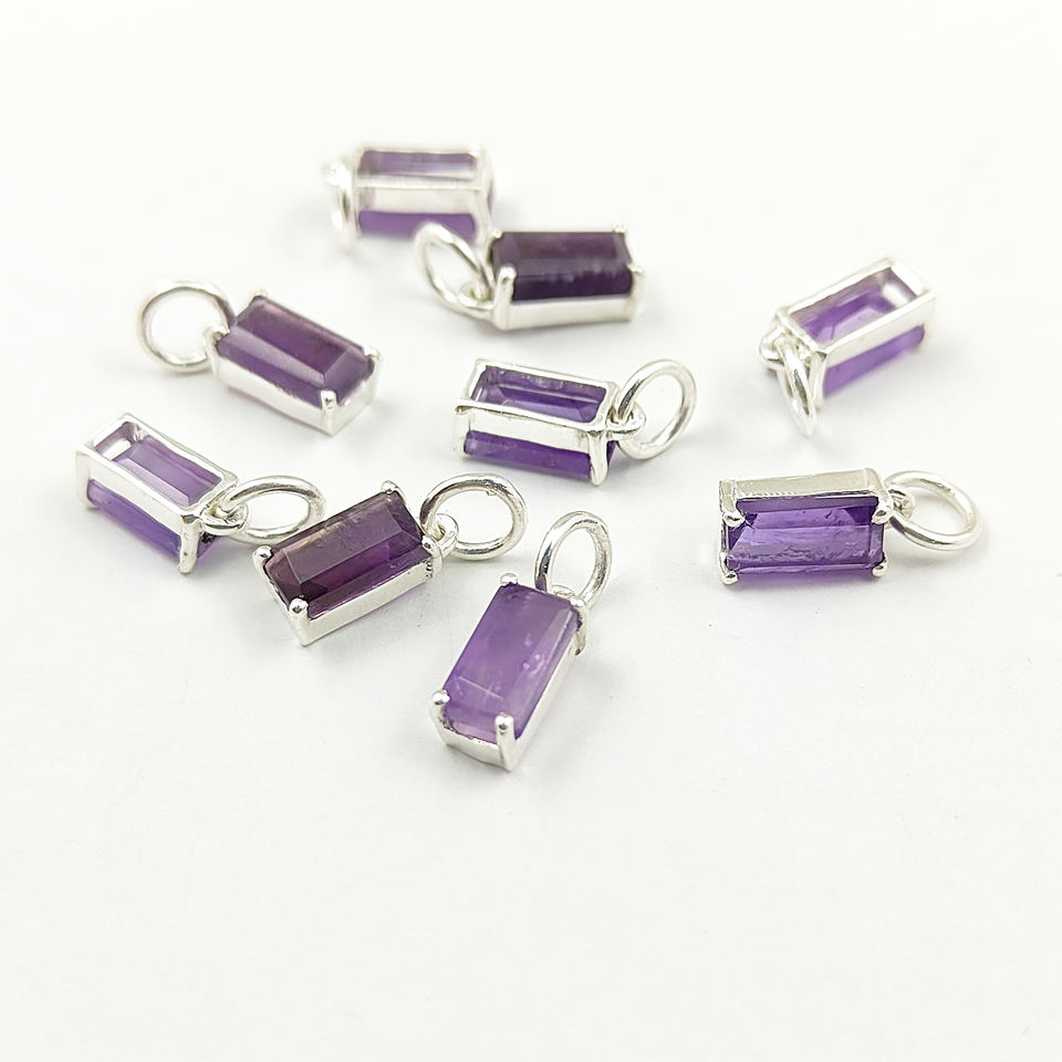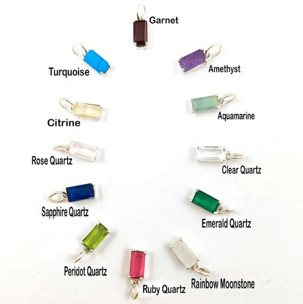 925จี้บาแกตต์พลอยควอตซ์โกเมนสีเงินโรเดียมชุบตัวเรือนชุดฝาของจิ้งหินวันเกิดของภารโรง