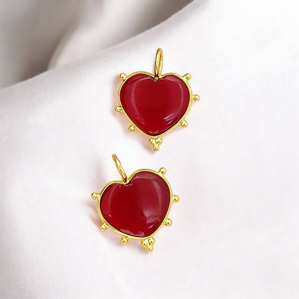 จี้โกเมนควอทซ์ใจอ่อนจี้หัวใจโกเมนควอตซ์รูปหัวใจเครื่องรางเงิน925สำหรับทำเครื่องประดับซัพพลายเออร์จากอินเดีย