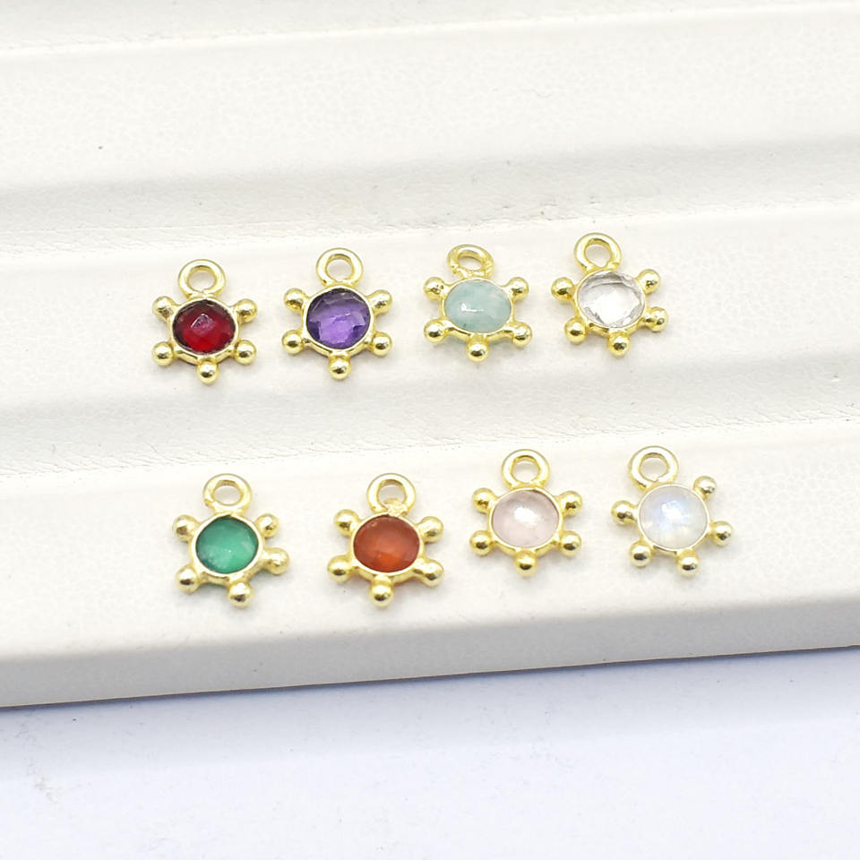 จี้หินควอตซ์สีแดงประดับทองรูปดาวเล็กๆ สำหรับทำต่างหู สร้อยคอ DIY