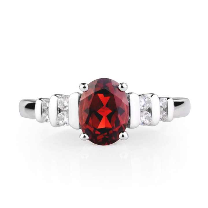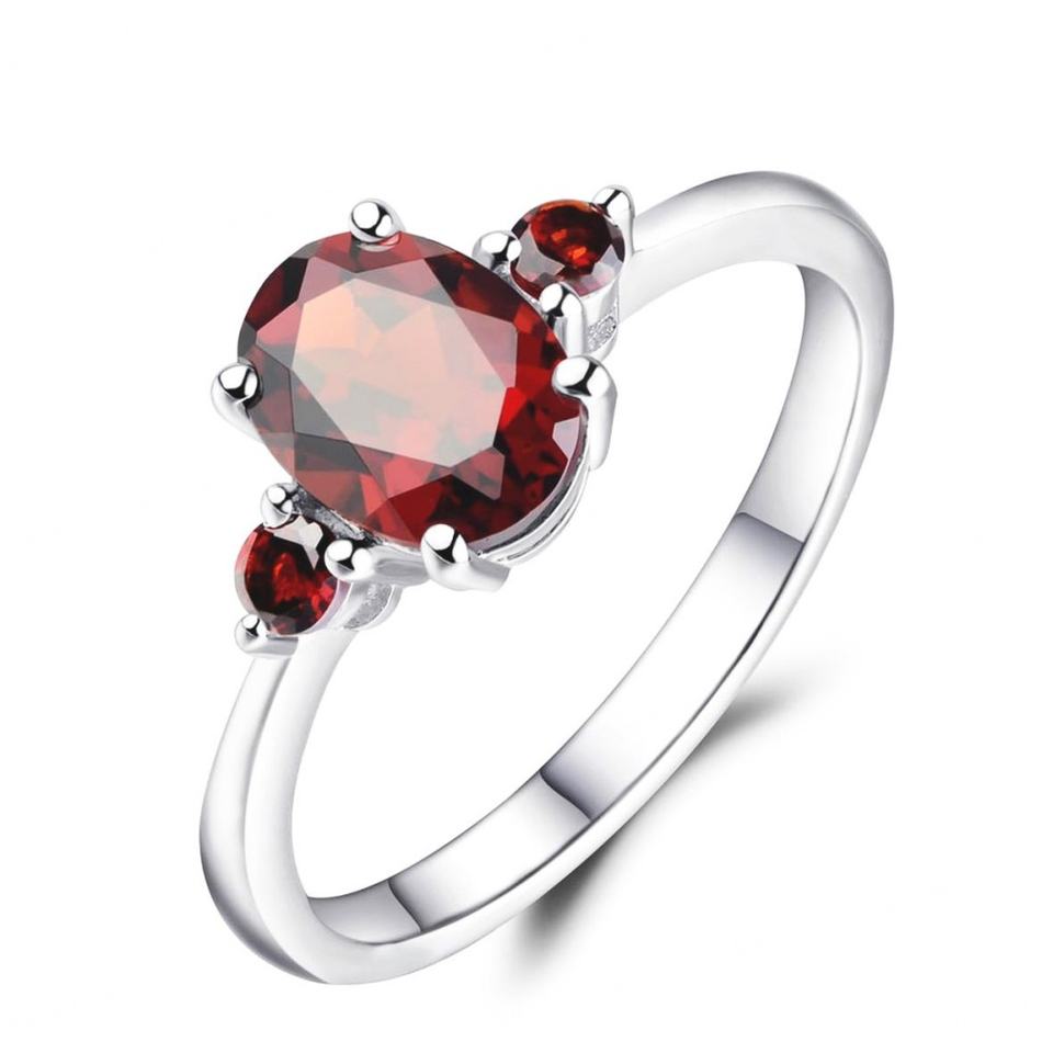 แหวนโกเมนราศีมังกร เงินแท้ 925 ชุดแต่งงาน แหวนหมั้นโกเมนทรงกลมสีเข้ม