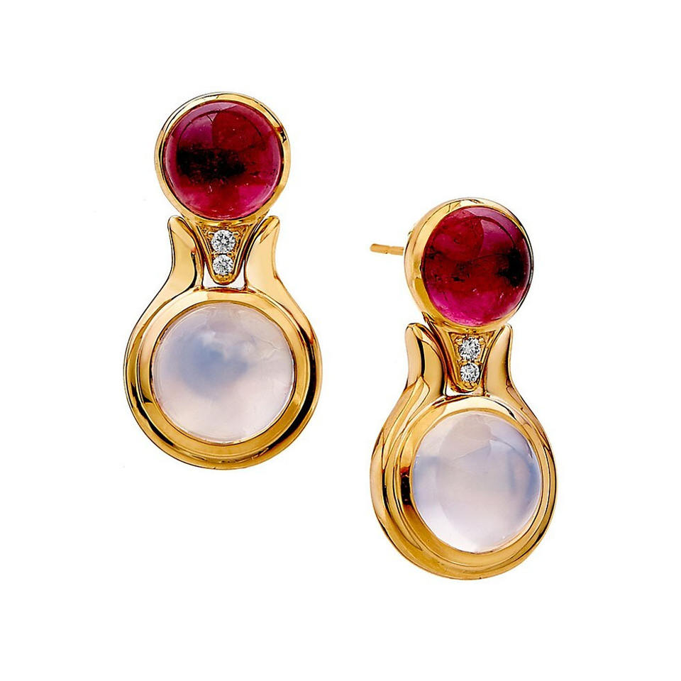 925ต่างหูเงินสเตอร์ลิงสีรุ้งมูนสโตนทำด้วยมือต่างหูพลอยโกเมนและเพชรทำด้วยมือชุบทอง-สำหรับเป็นของขวัญ