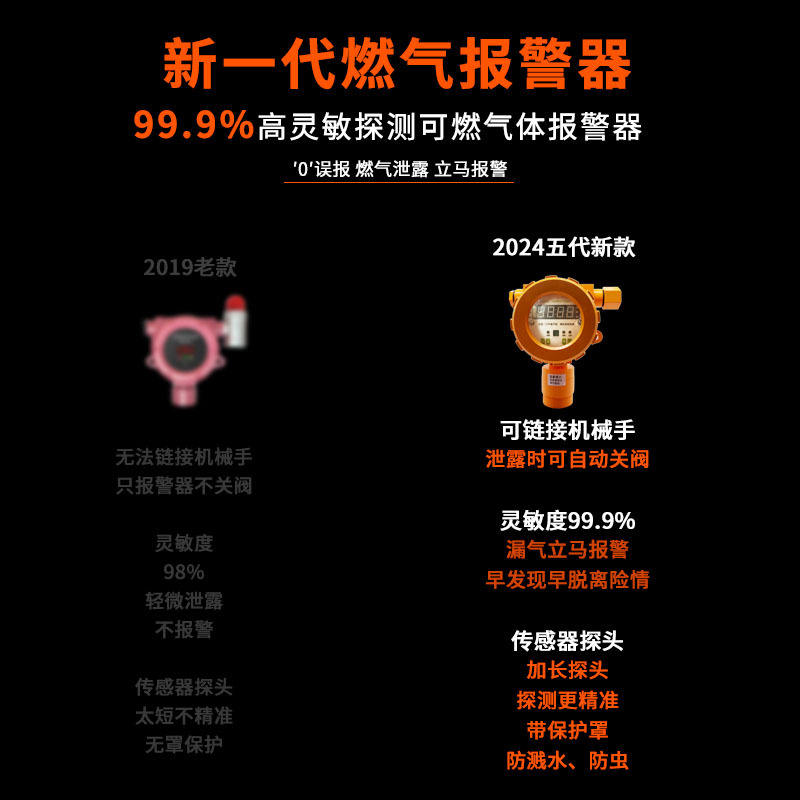 เครื่องตรวจจับการรั่วไหลของก๊าซพร้อมวาล์วปิด สำหรับครัวเชิงพาณิชย์ ตรวจจับก๊าซโพรเพนและก๊าซเหลว ใช้พลังงานไฟฟ้า