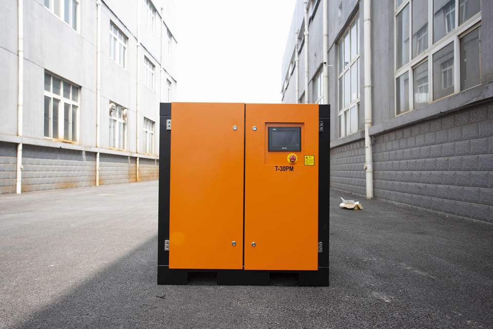 เครื่องอัดอากาศแบบสกรูอินเวอร์เตอร์อุปกรณ์อุตสาหกรรมใช้ก๊าซคอมเพรสเซอร์เสียงต่ำพร้อมมอเตอร์ PLC