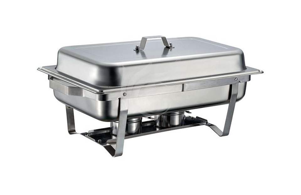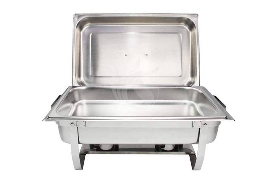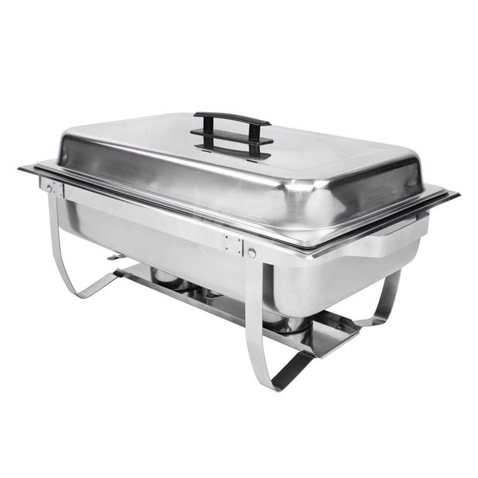 ชุดอุ่นอาหารสแตนเลสทรงสี่เหลี่ยมสีเงิน ใช้แก๊ส ความจุขนาดใหญ่ 9 ลิตร สำหรับบุฟเฟ่ต์