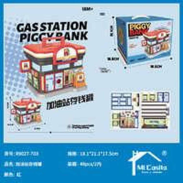 Gas Station-Themed Piggy Bank Toy Includes 48pcs/Carton of Assorted Plastic Money Saving Boxes with Theme Sticker
