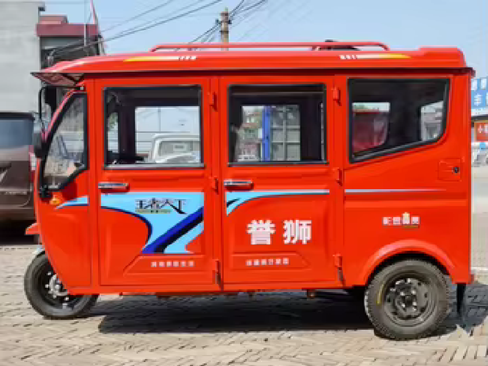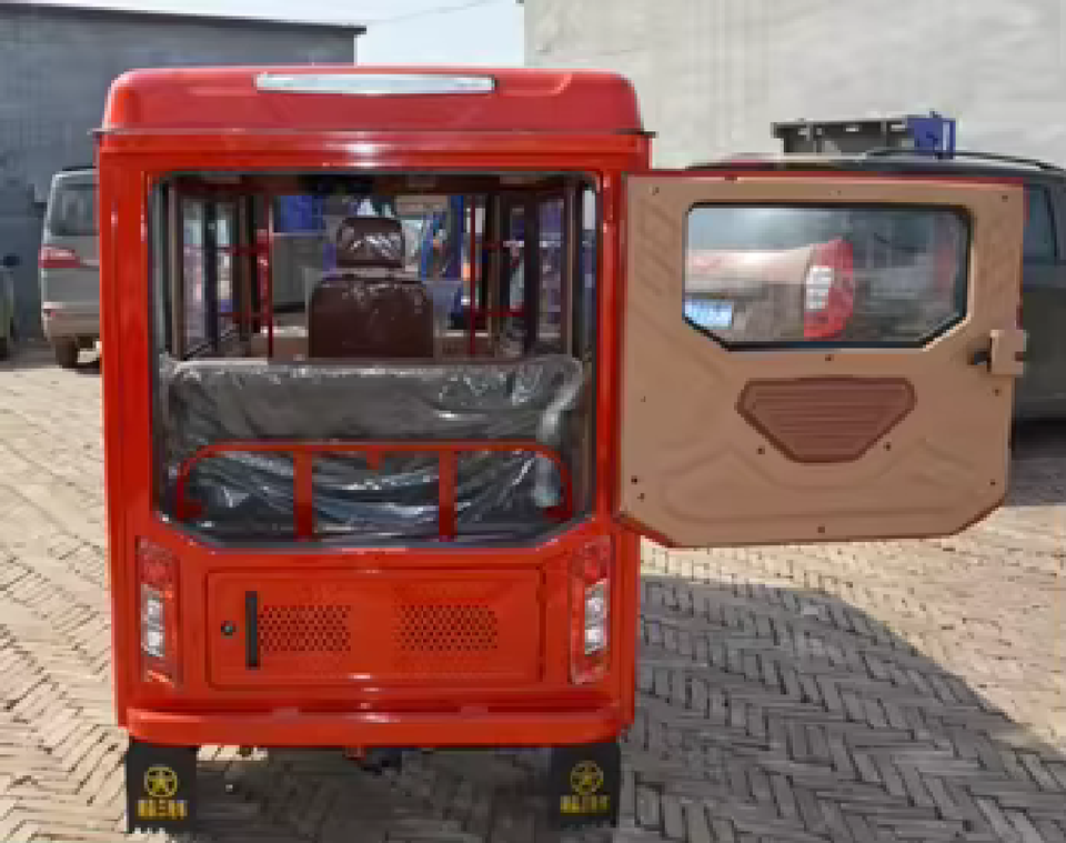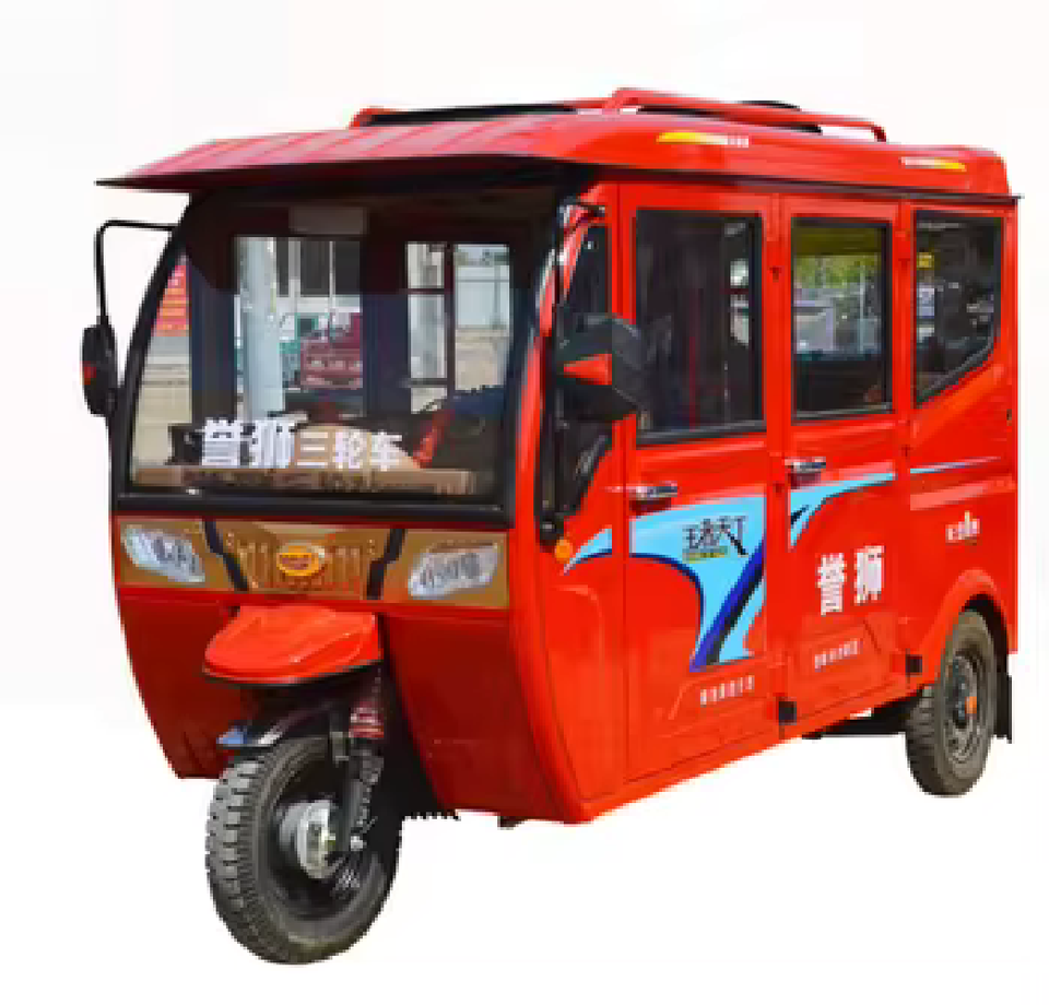 รถสามล้อแบบตัวถังแบบปิดเต็มตัวสำหรับแท็กซี่มีมอเตอร์เบนซินขนส่งผู้โดยสารกว้างขวาง