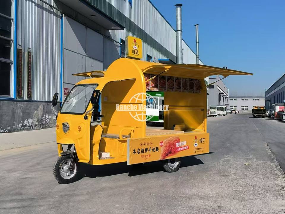 รถเข็นขายอาหารสามล้อเครื่องยนต์เบนซิน | โครงสร้างสแตนเลสสตีลและรูปแบบครัวที่ปรับแต่งได้อย่างเต็มที่
