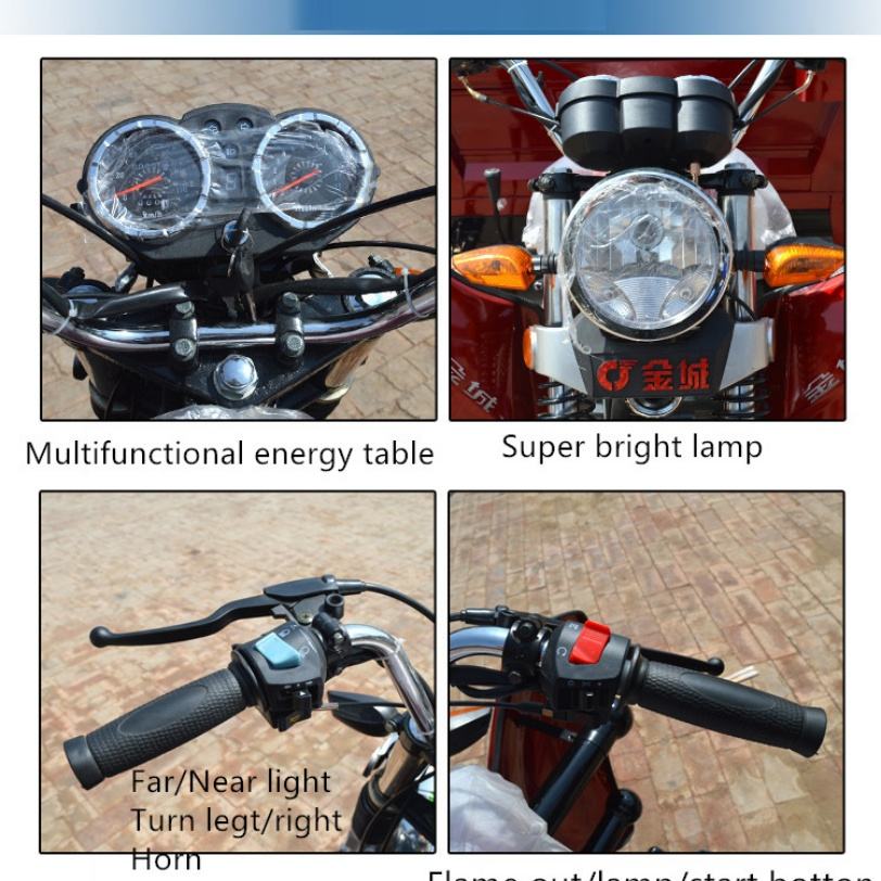 รถสามล้อเครื่องยนต์เบนซิน 150 ซีซี ระบายความร้อนด้วยน้ำ สีแดง 60V รถสามล้อบรรทุก 3 ล้อ 250 ซีซี มอเตอร์ไซค์ไฟฟ้า 16 มอเตอร์ 3 ล้อ
