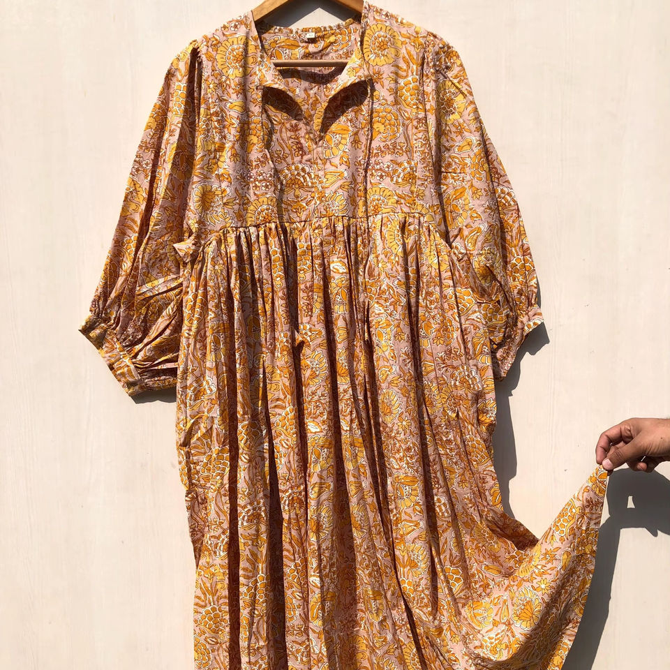 Gauze Dress Hand Block Printed Cotton Floral Midi with Deep Neck Women Direct From Wholesaler Women Sleepwear for Best Price