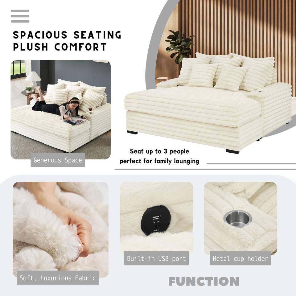 Gaviella Multi-Functional Chaise Lounge Oversized and Wide Wale Corduroy Plush Design for Comfort and Style