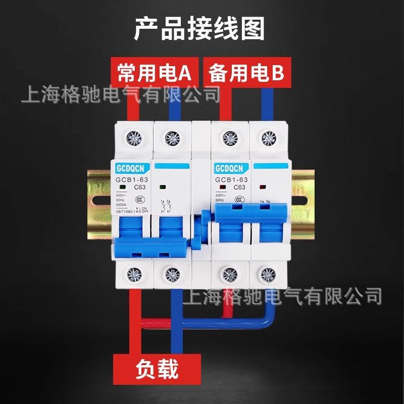 Gcdqcn Gcb1 63A 2P เบรกเกอร์วงจรขนาดเล็กในครัวเรือนสวิตช์อากาศเฟสเดียวแรงดันไฟฟ้าต่ำ 400V 50Hz C63