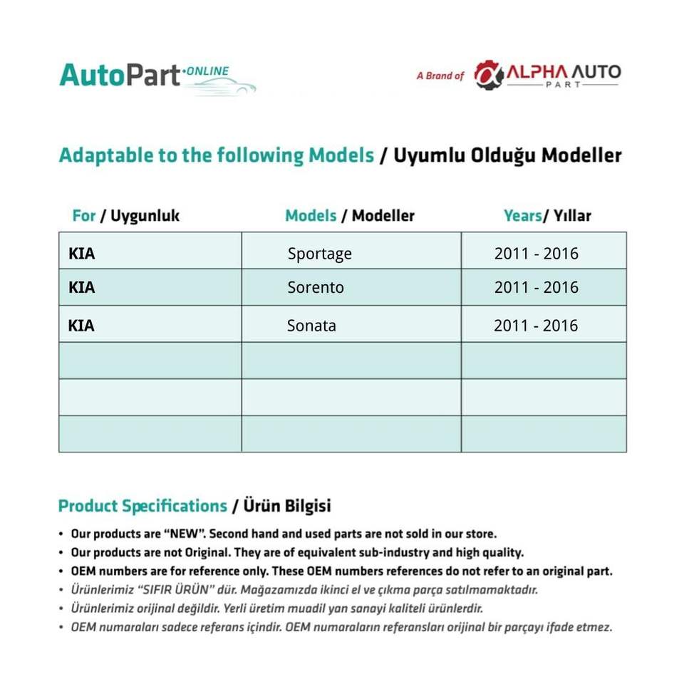 ชุดเกียร์และเฟืองกระจกมองข้างสำหรับรถยนต์ Kia Sportage, Sorento, Sonata (จัดส่งจากผู้ผลิตในตุรกี) รหัสสินค้า: FD112970