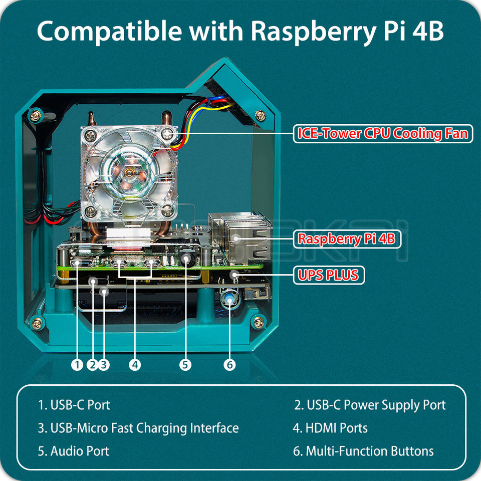 Geeekpi ABS มินิทาวเวอร์ชุดพัดลมตั้งโปรแกรมได้ RGB พร้อมโมดูลเคสสำหรับ4B ราสเบอร์รี่ Pi