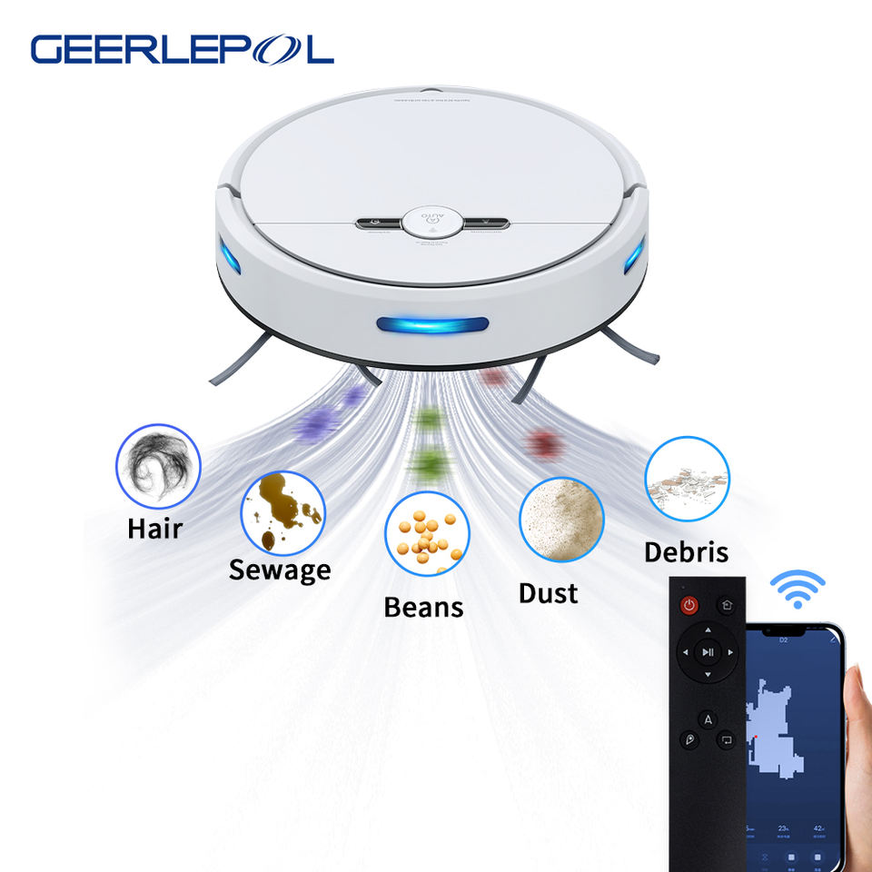 Geerlepol หุ่นยนต์ดูดฝุ่น2000PA, หุ่นยนต์ดูดฝุ่นอัจฉริยะควบคุมด้วย WiFi ทำความสะอาดแบบเปียกและแห้ง