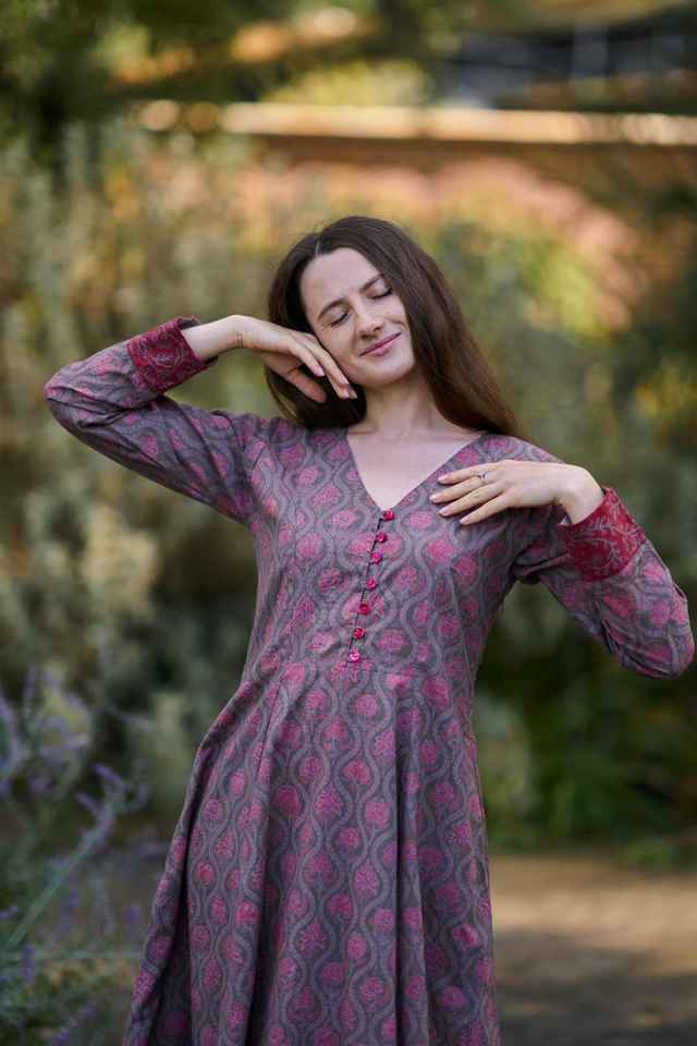 ชุดเดรสผ้าฝ้ายพิมพ์ลายดอกไม้แบบบล็อกมือสไตล์โบฮีเมียนลำลองสำหรับใส่ในโอกาสต่างๆ