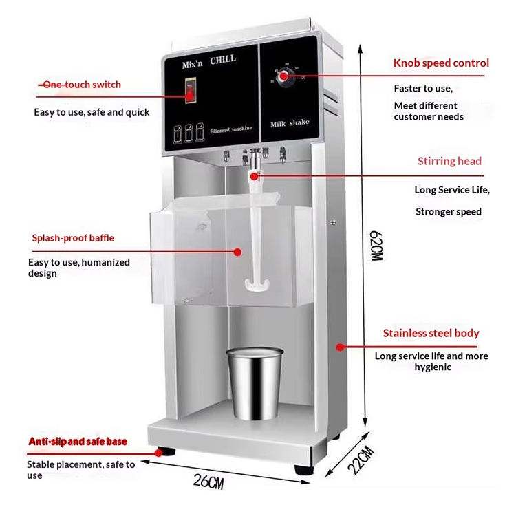 เครื่องผสมเจลาโต้พร้อมผลไม้และถั่วอัตโนมัติ 380 วัตต์ เครื่องทำไอศกรีมฟลูรี่ เครื่องปั่น เครื่องทำแมคฟลอรี่ เครื่องผสมไอศกรีม
