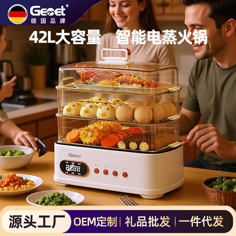 หม้อนึ่งไฟฟ้า Gemet ขนาด 42 ลิตร 4 ชั้น อเนกประสงค์ สำหรับใช้ในบ้าน พร้อมฝาแก้วนิรภัย